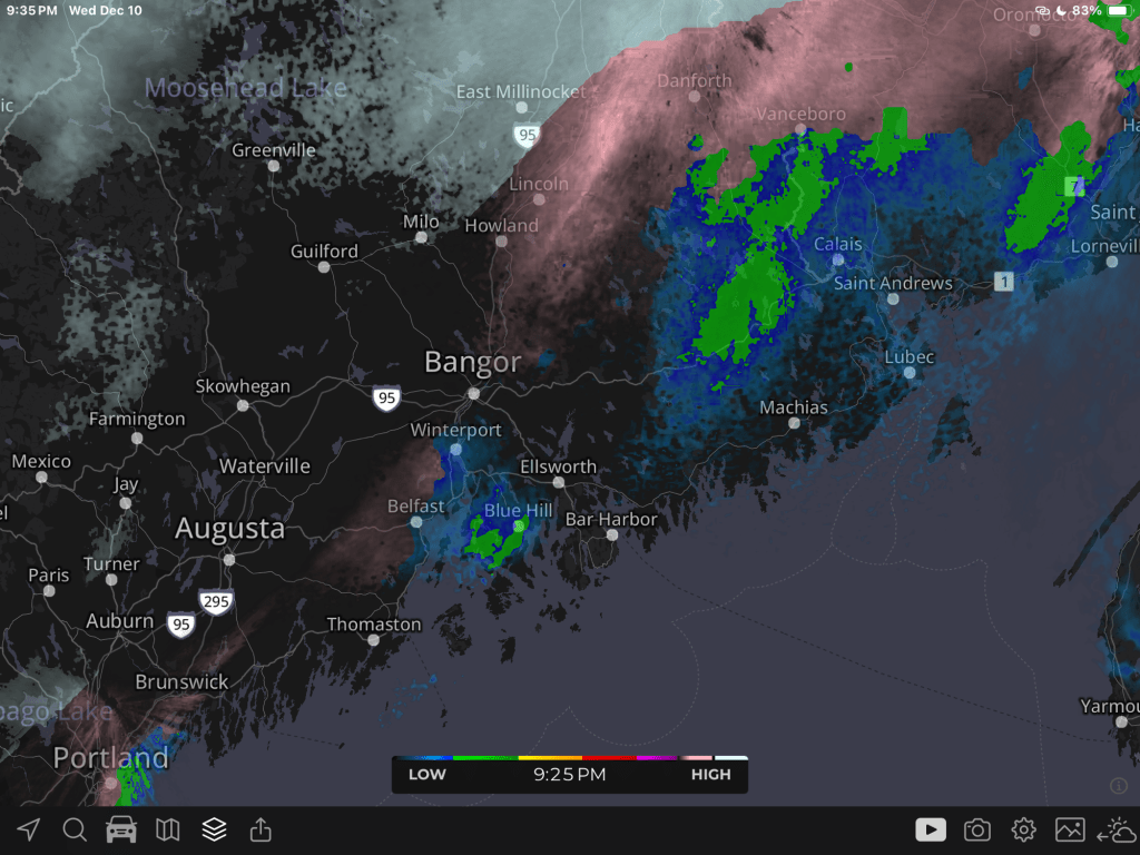 Precip started mid afternoon as I worked my way up the coast from Cutler after freight showed up in my van that was serviced yesterday.