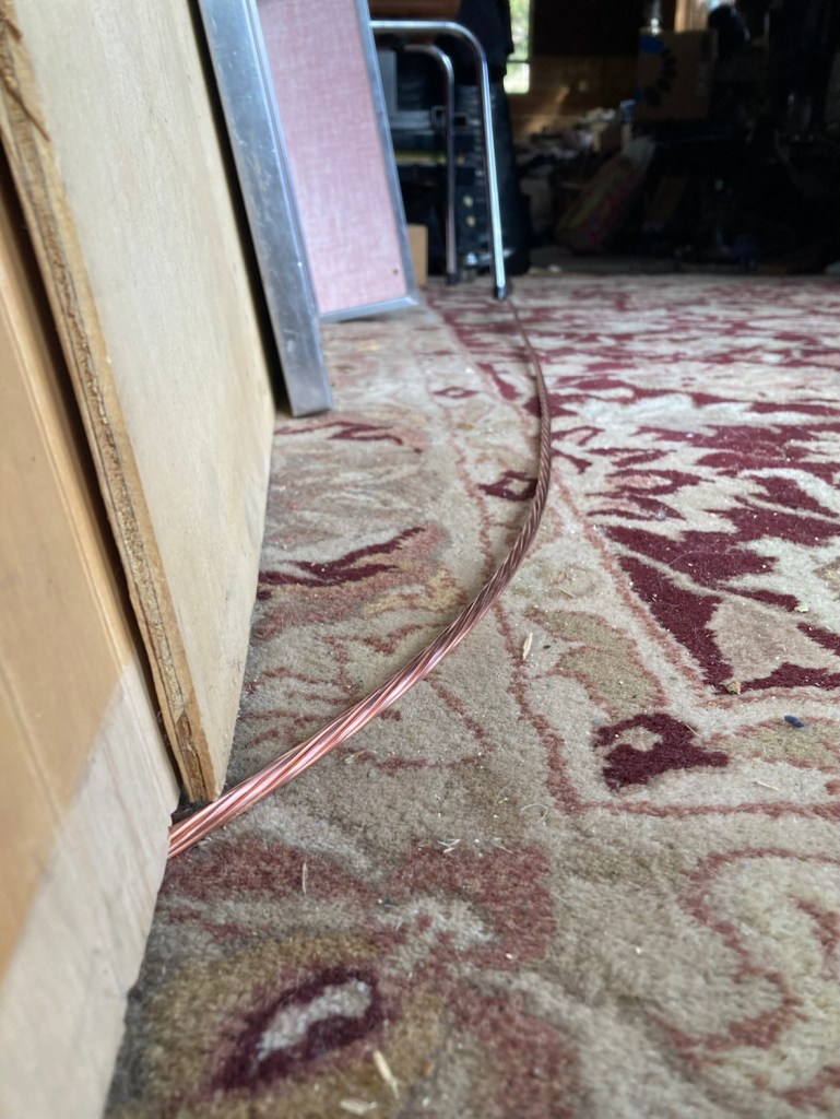 I’m reducing the memory of the grounding wire and going to be burying it today, connecting the two grounding rods.
