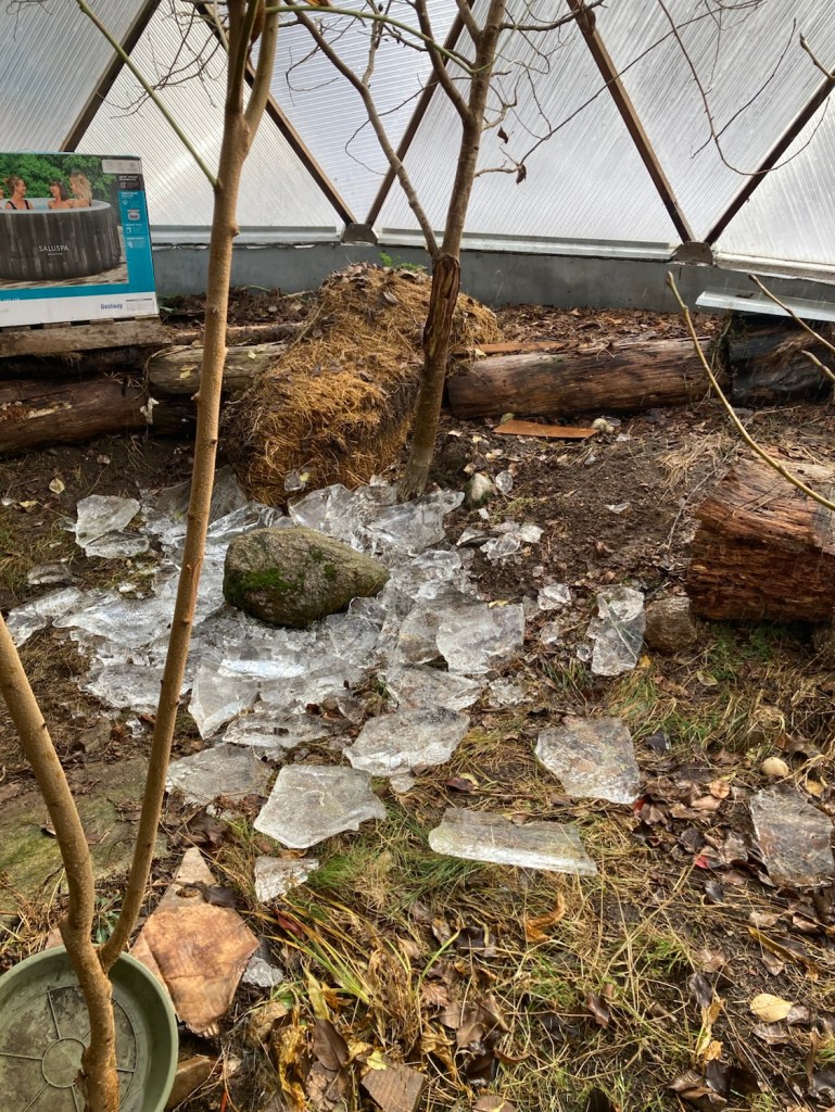 I’ve removed much of the ice from the pond, it was inches thick!!!