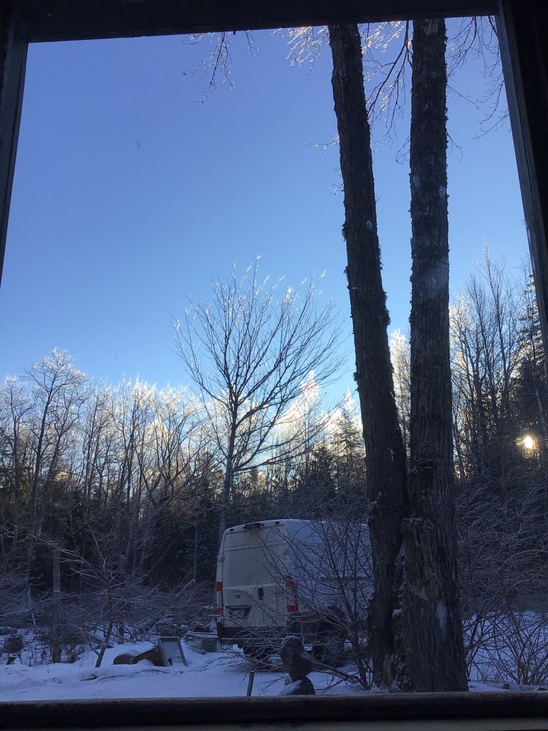 Said coating yet appears to be melting, but above freezing temps this week ensure it. Up over nine hours of daylight, soon enough the sun will be rising on the opposite side of the frame. Will I be looking for work when the bulbs are blooming?