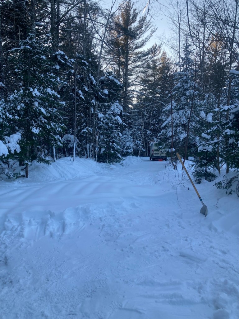 And worked it from both sides. Yah, great, pictures of white, splendid…. There are a few random leftover inches in the dooryard, the path to where it’s clean. Then worked the corner after coming down from the van.