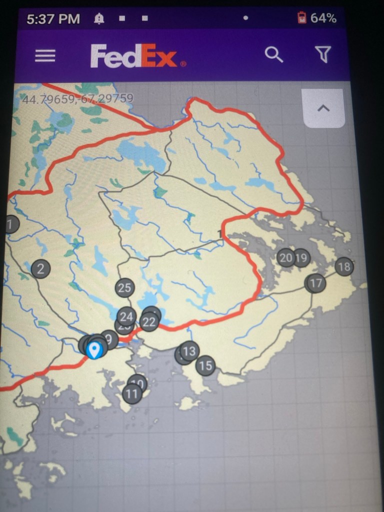 This morning my layers hadn’t even up on me before o donned the purple (FedEx uniform) and zoomed off to Bangor to pick up freight.