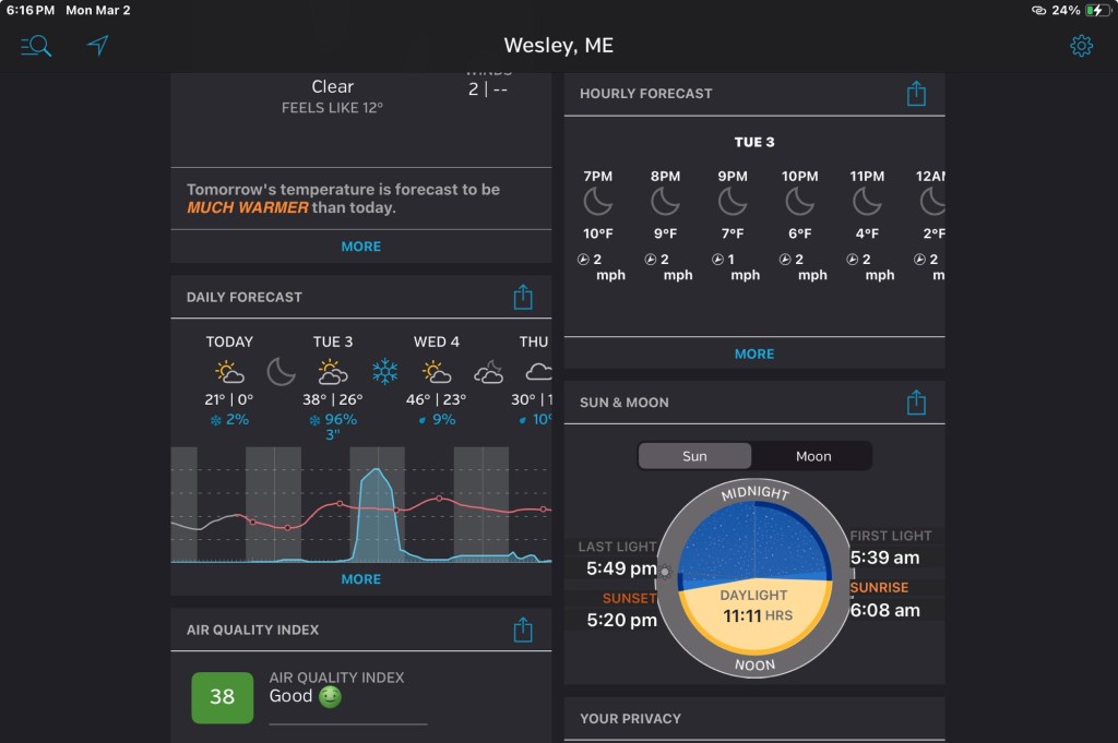I can see the moon in Maine. Iran can not. If I could touch a window or a mirror (part of the “11:11” practice) and break through, I’d like to tell them it’ll be okay, that many of us/US may not even notice the moon, but most of us aren’t pro war, aren’t so hateful and racist that we wish them ill.