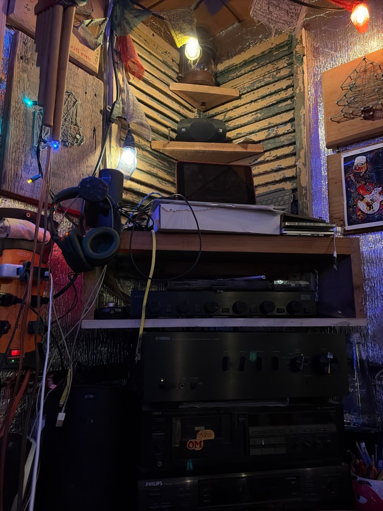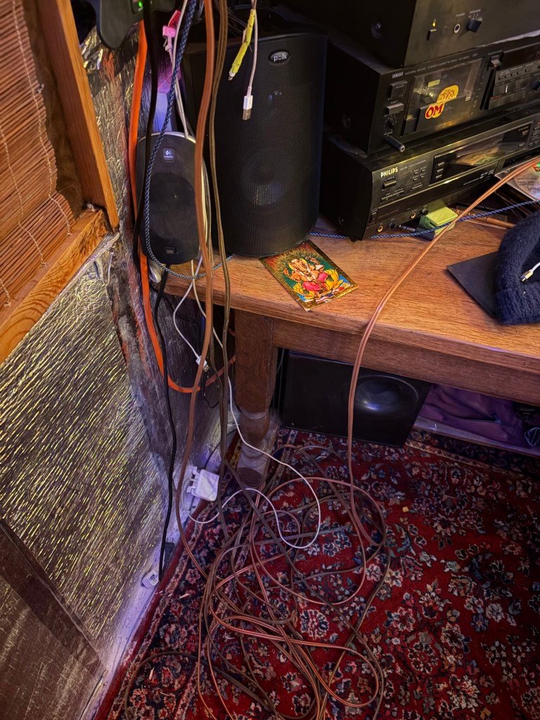 I brought in a pair of speakers from the borch. They sound great out there, but ultimately don’t get much play. As one guest some years ago said “you TRULY have surround sound” as speakers are well placed, and there aren’t dead spots.