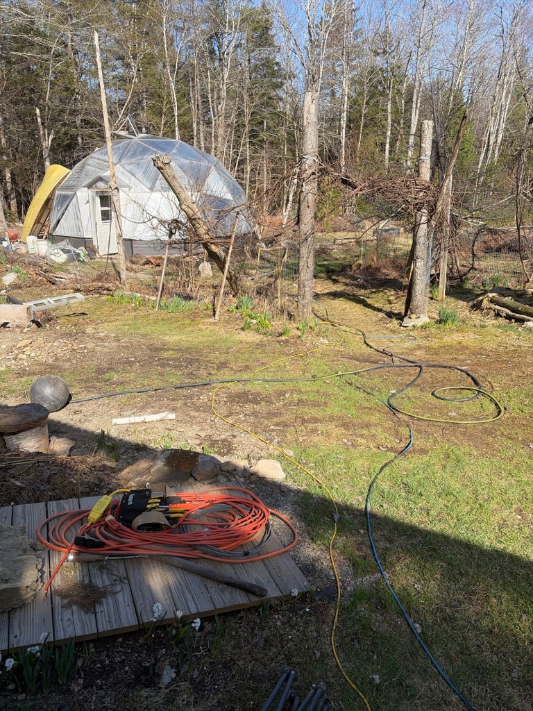 Today I shifted the power source situation, utilizing a wire I buried when I set up the well. Tomorrow I may cleanup the hose situation.