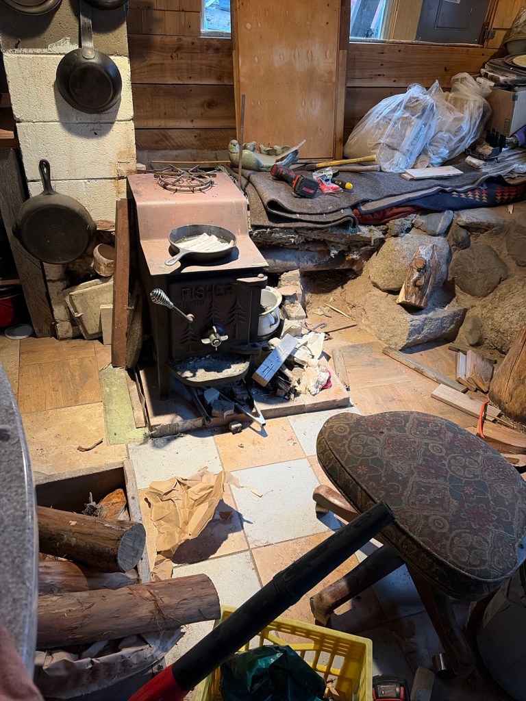 In the interim I manually turn on the circulation pump once the fire is going, then turn it off as it wanes. It’s been a gray and not warm April, so scrounging around, cleaning and cutting up scraps of this and that for BTUs